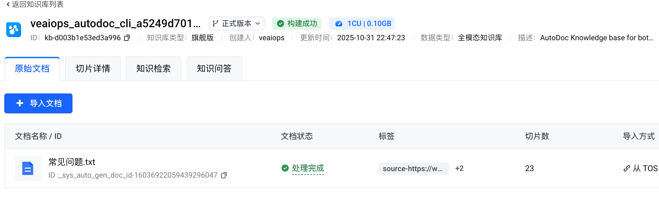 | AutoDoc | 自动文档知识库 | 火山知识库 | 否(自动生成) |